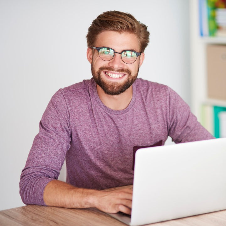 Unsere Blaulichtfilterbrillen reduzieren Augenbelastung und fördern deine Konzentration, damit du das Beste aus deinem Tag herausholen kannst. Mit VILENS bleibst du produktiv – und siehst dabei immer gut aus.